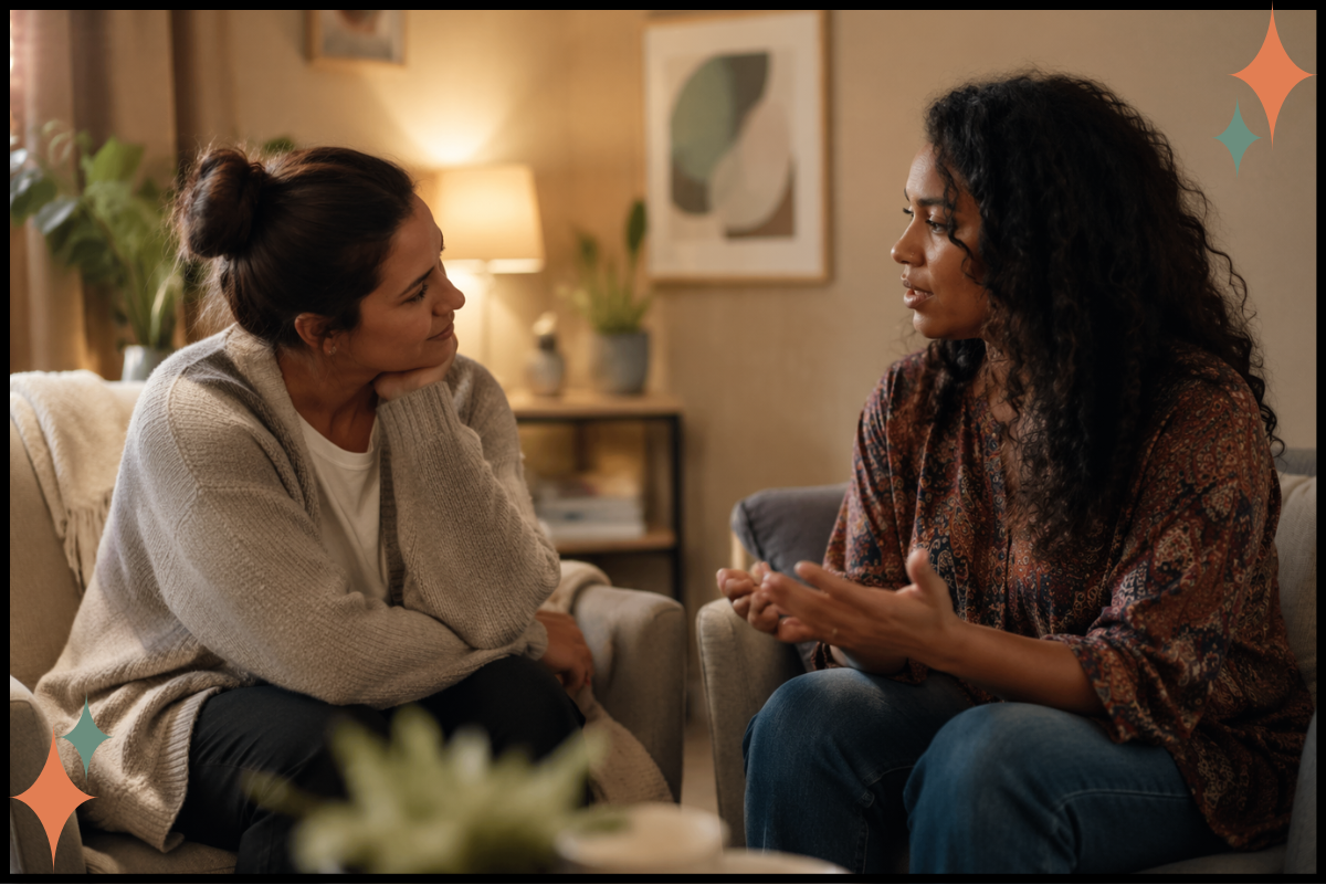 This distinction lives in how people talk, how policies are written, and how check-ins are framed. "Are you burned out?" feels very different from "How is this work affecting you?" because one implies you've failed while the other implies you're human. One closes the door, and the other holds it wide open.