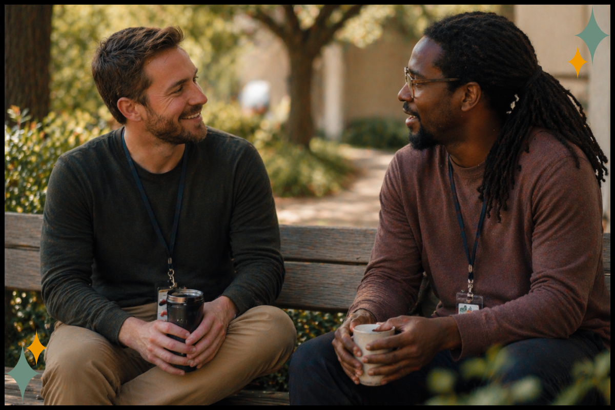 Sustainable organizations create structures for connection: peer consultation pairs, informal buddy systems, and intentional matching when someone new joins the team. These structures communicate something important: you're not supposed to carry this alone, and we're going to make sure you don't have to.